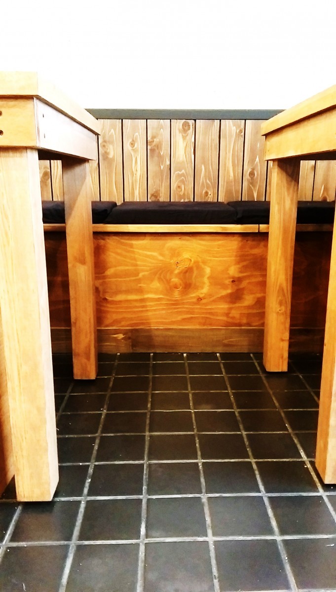 大きいベンチシートも木を生かしました。