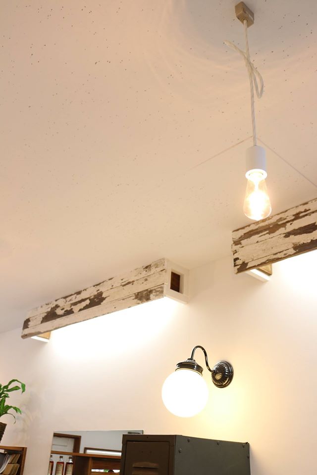 一部ペイントにはミルクペイントを使用し、ビスの一本までこだわり抜いた店内です。